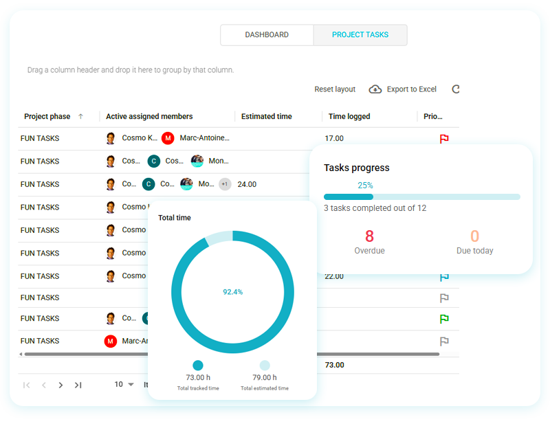 Get a complete view of your project in one centralized dashboard. Instantly access the key information you need, including status, deadlines, resources, budget, and progress, so you can make informed decisions without wasting time searching for details.